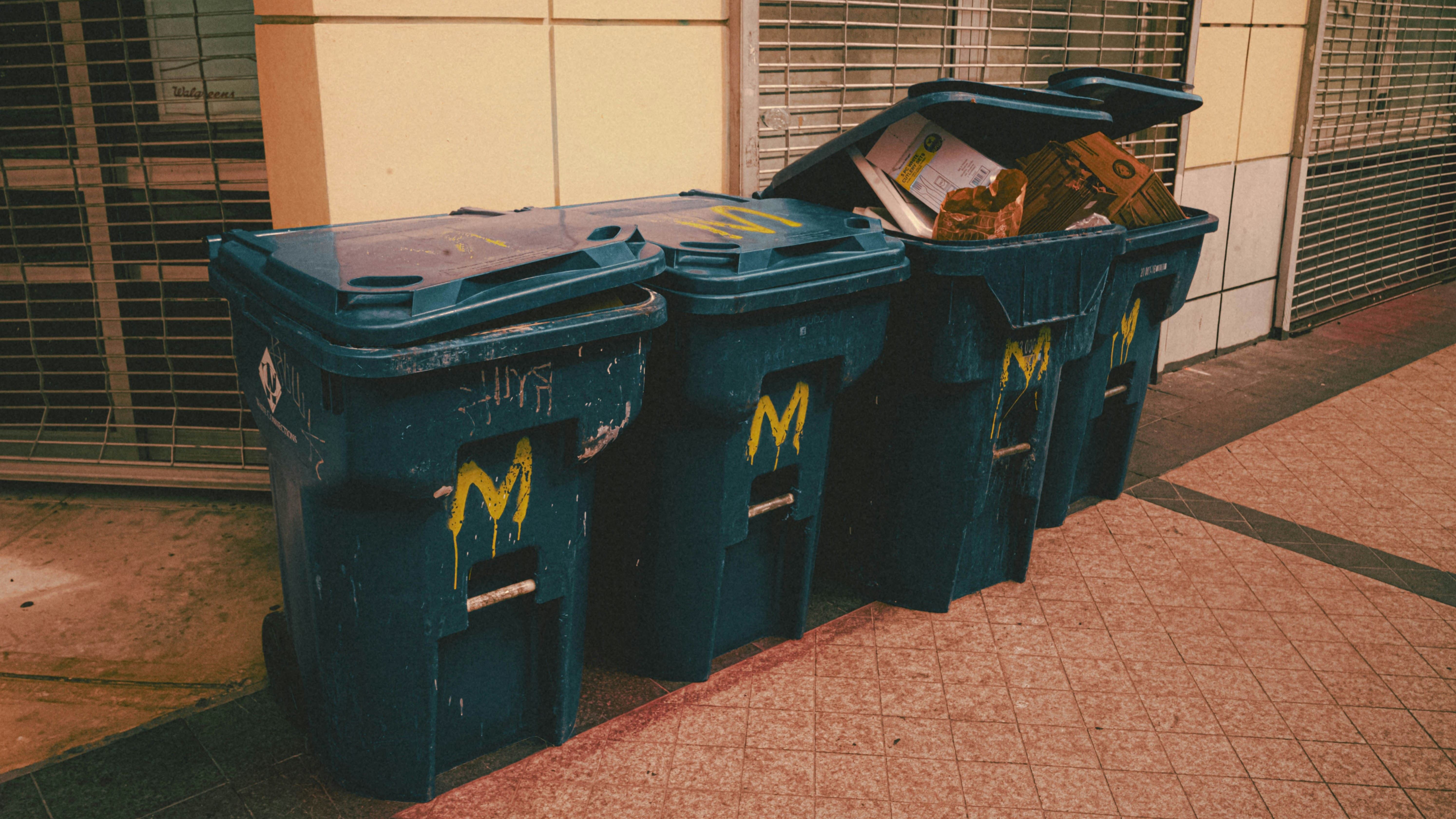 - Trash Cans by Sigmund on Unsplash, via https://unsplash.com/photos/a-couple-of-trash-cans-sitting-on-the-side-of-a-road-MtQtW7eD8w8. (Under License: Unsplash License)