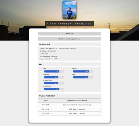 Berikut adalah hasil desain web portofolio profil yang saya buat: